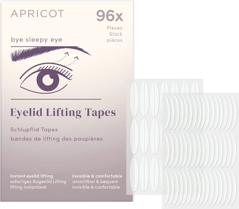 Dzięki taśmom liftingującym do powiek APRICOT można wizualnie podnieść powieki, co czyni je idealnym rozwiązaniem w przypadku opadających powiek. Taśmy są przezroczyste, niepozorne i można je łatwo pokryć makijażem, dzięki czemu idealnie wtapiają się w skórę. W mgnieniu oka uzyskasz promienny, rozbudzony wygląd. Opakowanie zawiera taśmy liftingujące w dwóch różnych rozmiarach.
