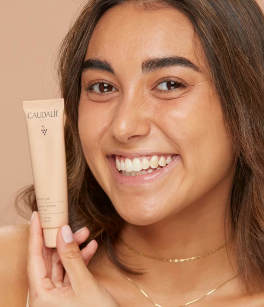 Vinocrush Skin Tint od Caudalie to idealne połączenie pielęgnacji skóry i makijażu. Niezależnie od rodzaju skóry, krem ten jest codziennym boosterem zapewniającym naturalne wykończenie bez efektu maski. Sekretem formuły są magiczne, zamknięte pigmenty naturalnego pochodzenia, które wtapiają się w skórę dopiero po nałożeniu i natychmiast łagodzą podrażnienia i niedoskonałości. Tymczasem niacynamid udoskonala cerę, a organiczna woda winogronowa i kwas hialuronowy intensywnie nawilżają, aby twarz wyglądała świeżo i jędrnie przez cały dzień. Podkreśl swoje prawdziwe piękno!
