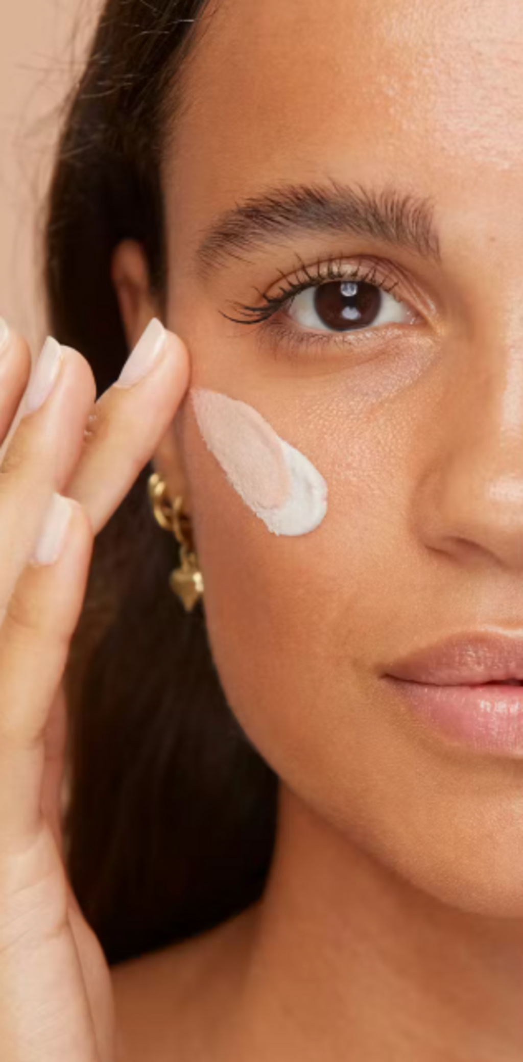 - Za pomocą palców nałóż na twarz i szyję ilość kremu wielkości orzecha laskowego.