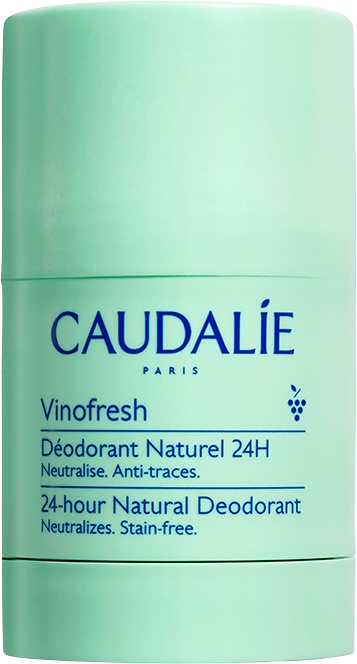 Naturalny dezodorant Vinofresh 24h marki Caudalie to sekret codziennej świeżości. Zwłaszcza jeśli masz wrażliwą skórę, potrzebujesz delikatnego, a jednocześnie skutecznego rozwiązania oczyszczającego, które eliminuje nieprzyjemne zapachy. Ten wygodny dezodorant w sztyfcie ma naturalną formułę bez alkoholu, soli aluminium ani syntetycznych substancji zapachowych i neutralizuje potliwość do 24 godzin. Efekt ten uzyskano dzięki organicznej wodzie winogronowej i organicznemu eukaliptusowi, które dodatkowo intensywnie odżywiają skórę i zapewniają jej niezbędne nawilżenie dzięki glicerynie. Zapach uniseks eukaliptusa zapewnia orzeźwiające uczucie świeżości, które utrzymuje się przez cały dzień.