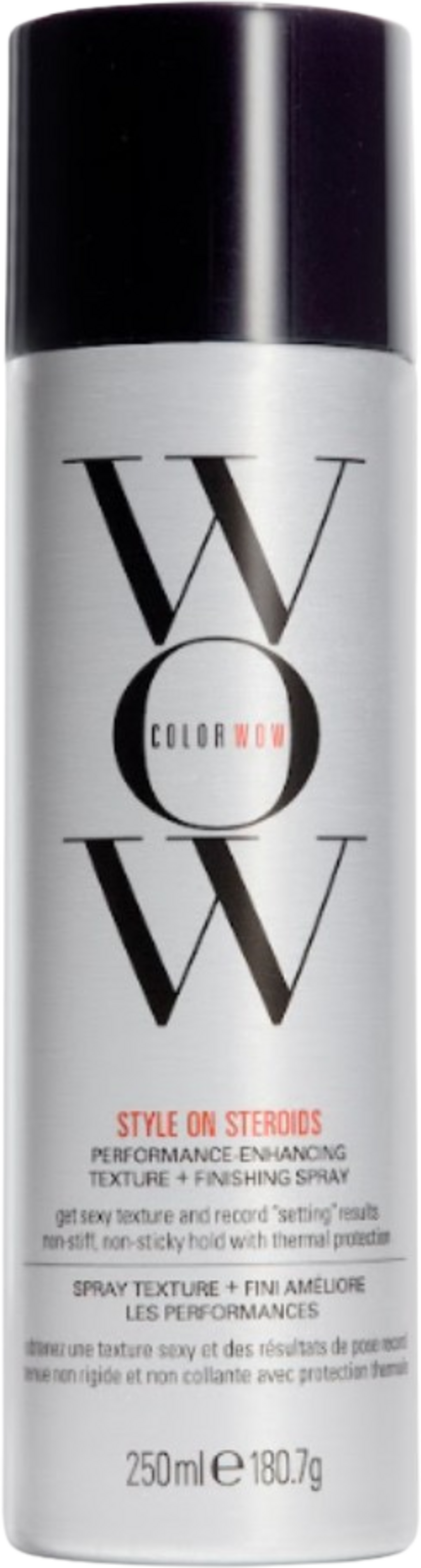 Style on Steroids - Performance Enhancing Texture + Finishing Spray od Color WOW to spray teksturyzujący, który nadaje włosom więcej objętości bez pozostawiania nieestetycznego osadu na włosach i skórze głowy. Zapewnia również ochronę przed wysoką temperaturą i chroni włosy przed utratą i blaknięciem koloru. Nawet podczas stylizacji za pomocą suszarki lub prostownicy możesz mieć pewność, że spray nie sklei włosów ani nie utworzy grudek.