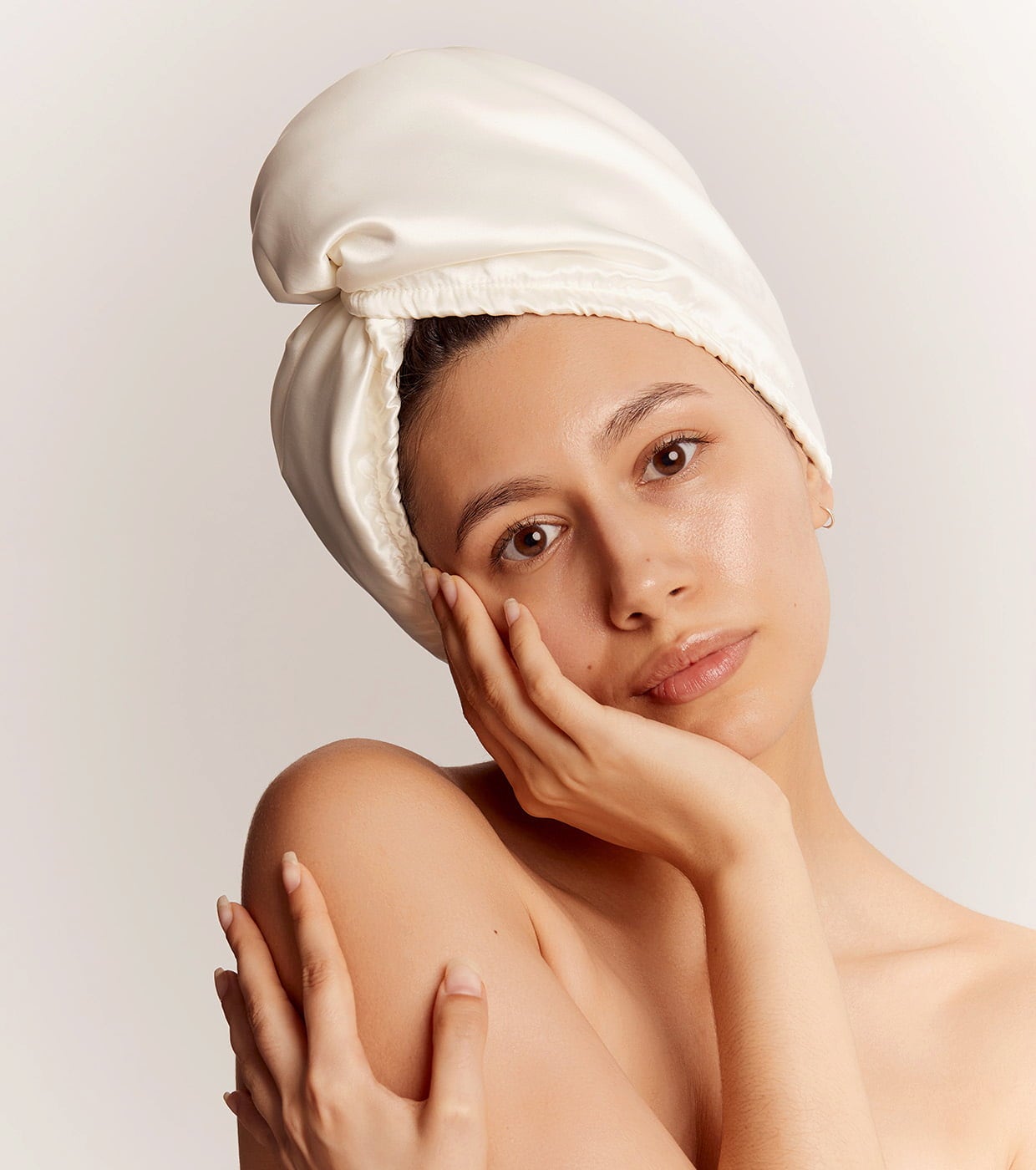 GLOV Double-Sided Satin Hait Towel Wrap, Beige
