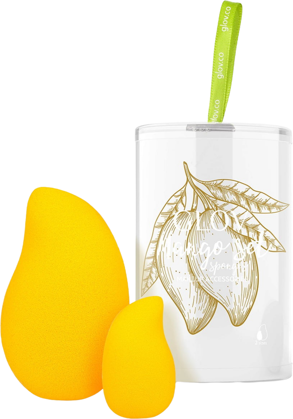Zestaw mango składający się z dwóch części marki GLOV zawiera dwie gąbki do makijażu w różnych rozmiarach. Mniejsza gąbka przeznaczona jest do precyzyjnej aplikacji kosmetyków wokół oczu oraz w miejscach wymagających większej precyzji. Większa gąbka idealnie nadaje się do nakładania pudru lub podkładu na twarz i dekolt.