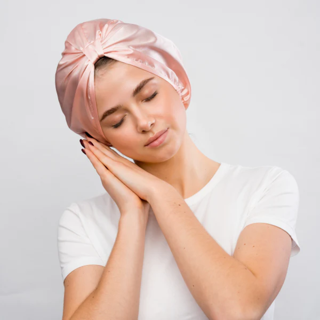 Satynowy turban GLOV ma na celu ochronę kręconych włosów podczas snu. Chroni przed tarciem i związanym z tym puszeniem się włosów, a także przed elektryzowaniem si. Dzięki właściwościom satyny, gładkiego, oddychającego materiału, nie wysusza włosów i chroni je przed szkodliwym tarciem podczas snu. Elegancki design sprawia, że będziesz wyglądać dobrze, a wygodny krój utrzymuje wszystkie włosy na swoim miejscu. Można go również używać z wałkiem Cool Curl i jest wystarczająco duży, aby bezpiecznie trzymać grube, długie włosy.