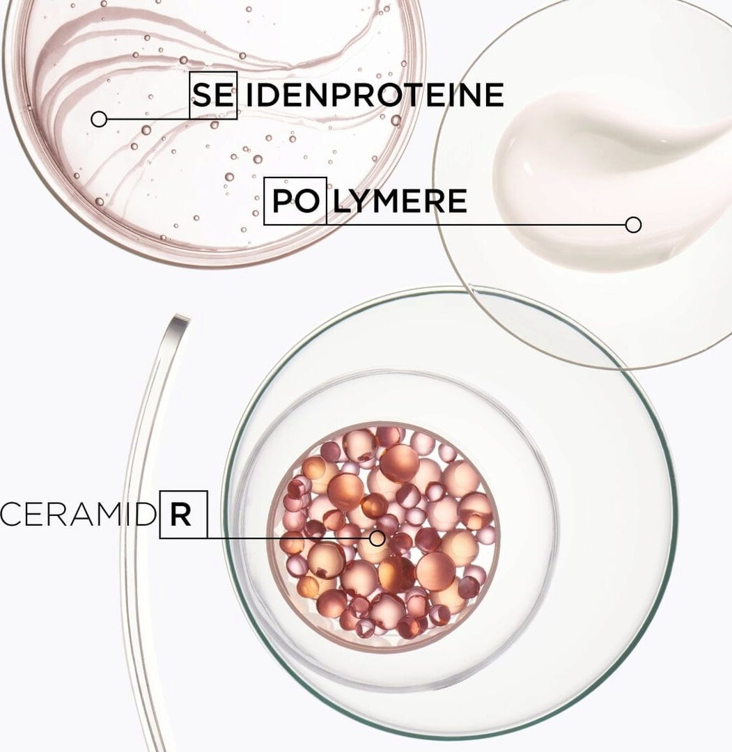Aqua, Sodium Laureth Sulfate, Coco-Betaine, Glycerin, Glycol Distearate, Sodium Chloride, Amodimethicone, Parfum, Ppg-5-Ceteth-20, Dimethicone, Sodium Benzoate, Sodium Hydroxyde, Citric Acid, Polyquaternium-6, Salicylic Acid, Carbomer, Arginin, Glutamic Acid, Benzyl Salicylate, Trideceth-6, Serin, Benzyl Alcohol, Hydroxypropyltrimonium Hydrolyzed Wheat Protein, 2-Oleamido-1,3-Octadecanediol, Cetrimoniumchlorid, Linalool, Alpha-Isomethyl Ionone, Phenoxyethanol, Tetrasodium Edta