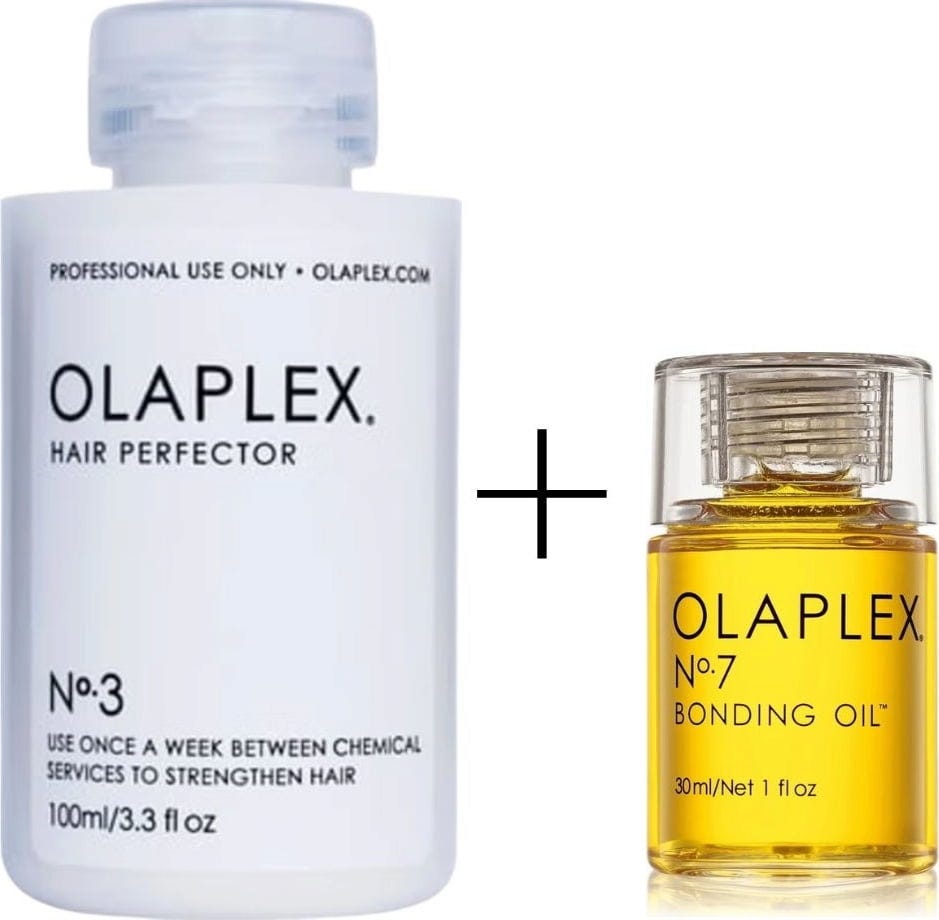 Zestaw pielęgnacyjny Olaplex składający się z produktów No. 3 & 7, który oferuje pielęgnację wzmacniającą.