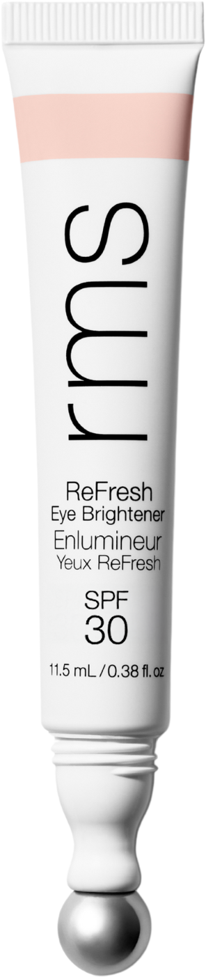 ReFresh Eye Brightener SPF 30 od RMS Beauty to lekki, bardzo transparentny rozświetlacz pod oczy ze 100% mineralnym filtrem przeciwsłonecznym SPF 30. Z jednej strony pielęgnuje skórę, a z drugiej widocznie poprawia wygląd cieni pod oczami i drobnych zmarszczek dzięki delikatnemu, korygującemu koloryt odcieniowi. Jednocześnie rozświetlacz chroni wrażliwe okolice oczu przed szkodliwym promieniowaniem słonecznym za pomocą tlenku cynku w formie non-nano. Innowacyjna formuła w połączeniu z chłodzącym metalowym aplikatorem rolkowym zapewnia natychmiastowy efekt oraz gładki, napięty i promienny wygląd cery. Kofeina i ekstrakt z nasion kawy zapewniają zastrzyk energii, szczególnie zmęczonej skórze.