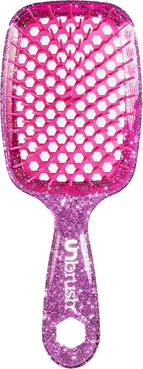 Pożegnaj się z Bad Hair Days i bolesnym wyrywaniem włosów! Detangling Hair Brush UNbrush to nowy must-have dla Twojej fryzury. Niezależnie od tego, czy właśnie wyszłaś spod prysznica, czy chcesz odświeżyć suche włosy, ta szczotka gładko rozczesuje każdy kołtun, nie powodując żadnych szarpnięć. To zasługa pomysłowego połączenia 105 włosia Soft-Flex i UltraFlex o dwóch różnych długościach, które dokładnie rozczesuje nawet najbardziej trudne do układania włosy, skutecznie redukując ich łamanie. Lekki materiał i ergonomiczny uchwyt sprawiają, że szczotka idealnie leży w dłoni, ułatwiając rozczesywanie. Perforowany korpus szczotki w połączeniu z odpornym na ciepło włosiem skraca czas suszenia nawet o 48%, przyspieszając stylizację.
